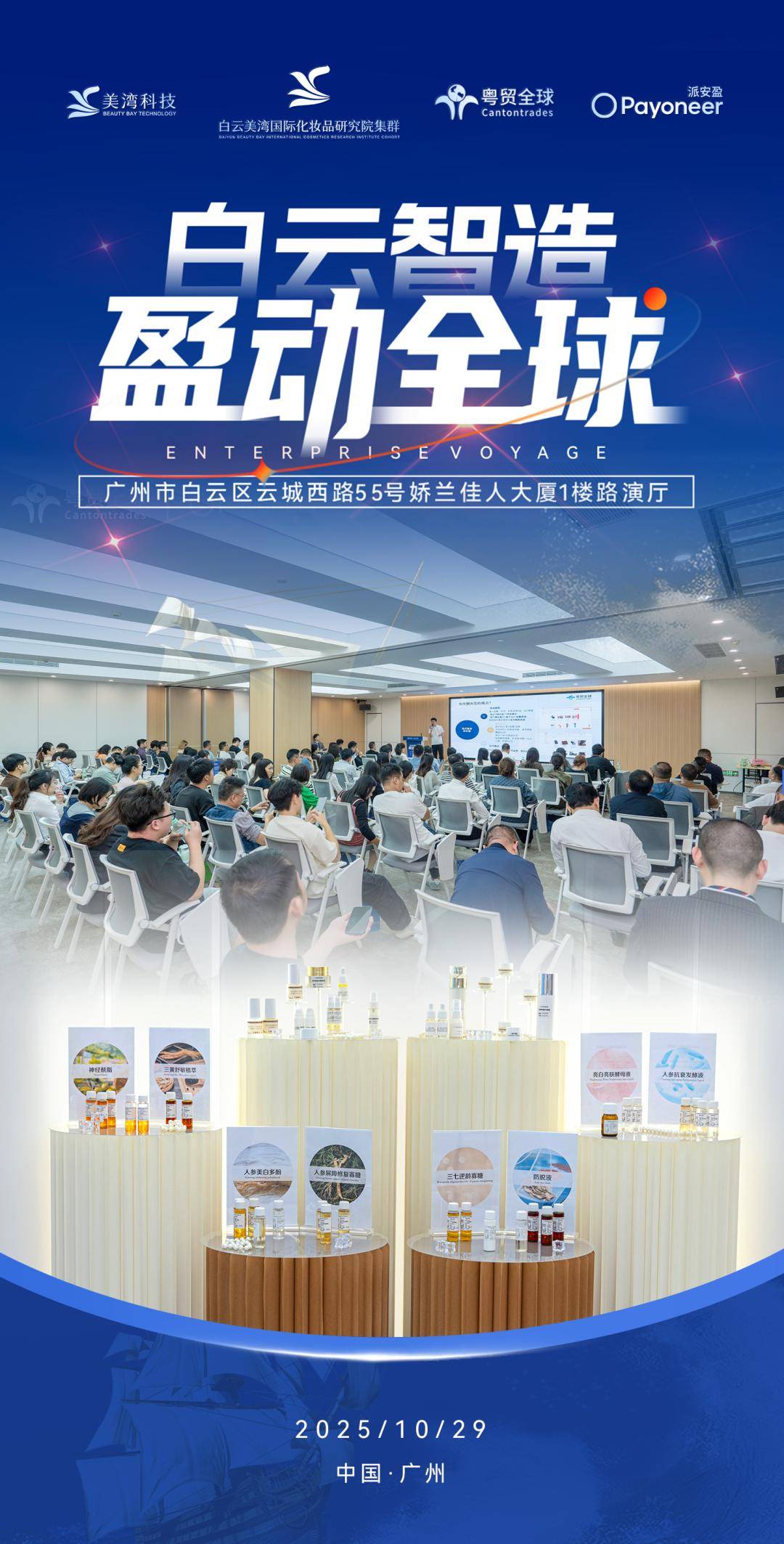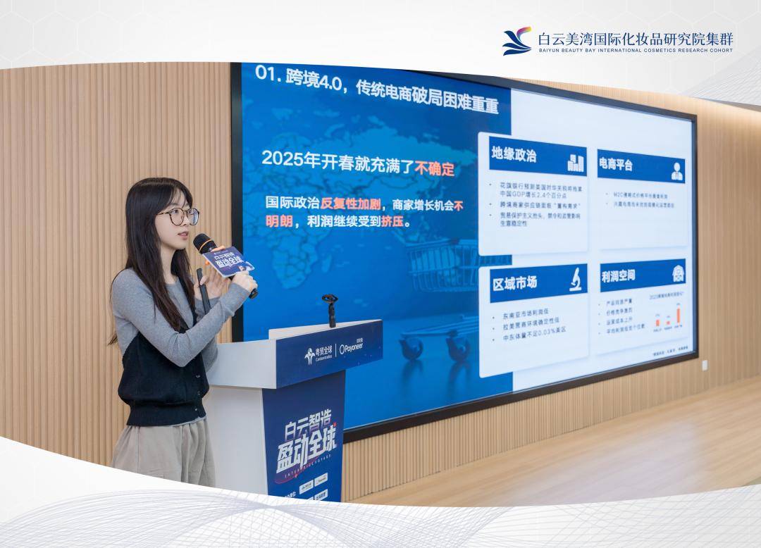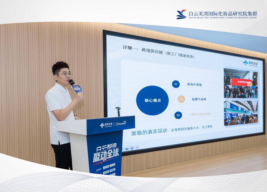 本次活动聚焦白云区化妆品、皮具箱包两大优势产业,构建全方位出海赋能体系。由于国内化妆品、皮具箱包行业正遭遇同质化竞争加剧、利润空间压缩、订单增长放缓的发展瓶颈,海外万亿级蓝海市场成为企业寻求新增长的关键方向。本次活动精准破解企业出海 “渠道难寻、合规难办、订单难接” 的核心痛点,依托白云美湾国际化妆品研究院集群在技术研发、标准制定、合规认证等领域的优势,以及深耕跨境电商领域多年,拥有 “粤贸选品中心” 线下载体与 “粤贸甄选平台” 线上渠道的粤贸全球平台,为白云区两大优势产业搭建起链接全球市场的高效桥梁。