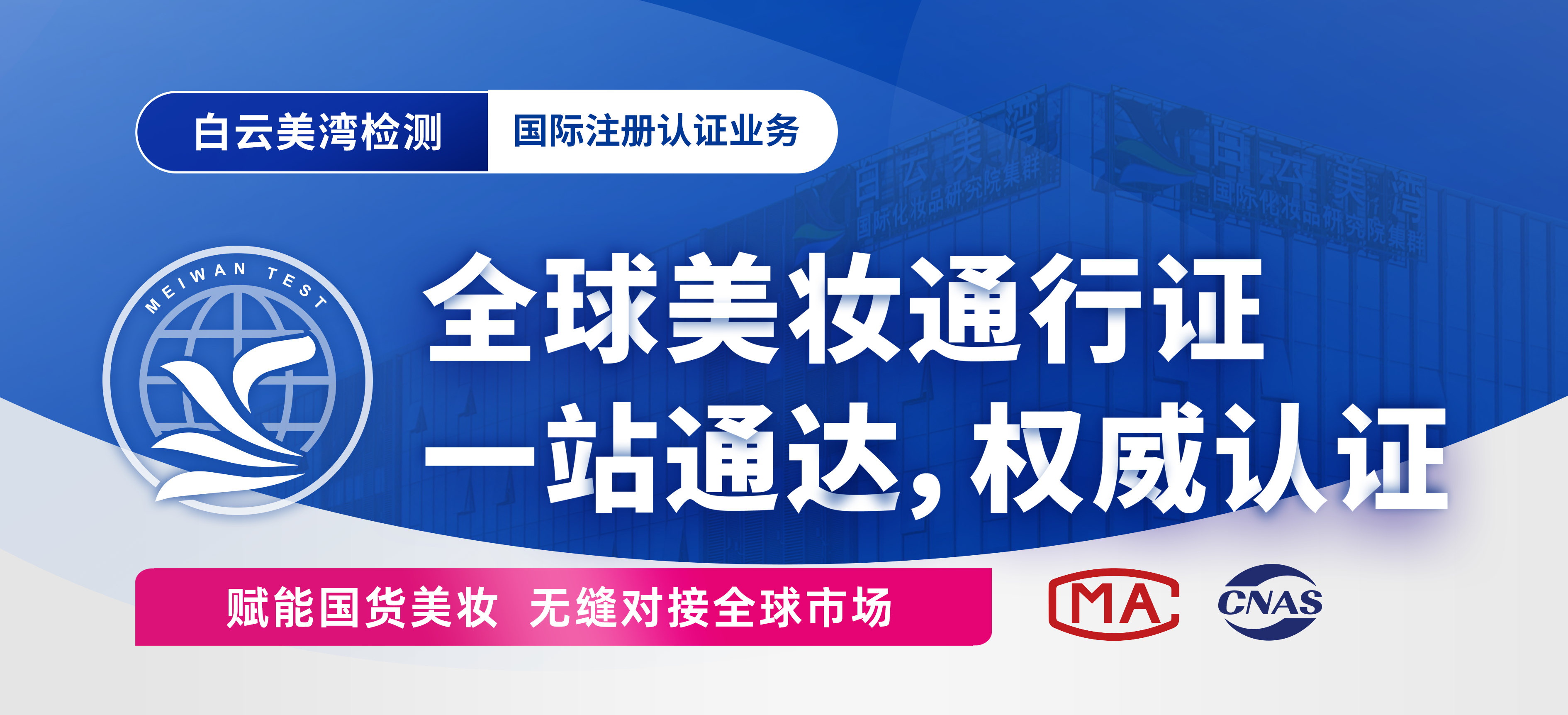 白云美湾检测【进口中国注册备案】 全国美妆通行证,一站通达,权威认证 赋能全球美妆,无缝对接中国市场 【1、专业,全国信赖】拥有国际认可及中国资质的检测实验室与资深专家团队,确保认证合规、权威; 【2、高效、快人一步】定制化认证流程,精准高效,显著缩短 您的产品进口周期; 【3、广覆盖,一站通达】业务覆盖欧美、东盟、中东南美、欧亚经济共同体、非洲等全球主流市场,进口中国(包含港澳)助您畅行无阻。