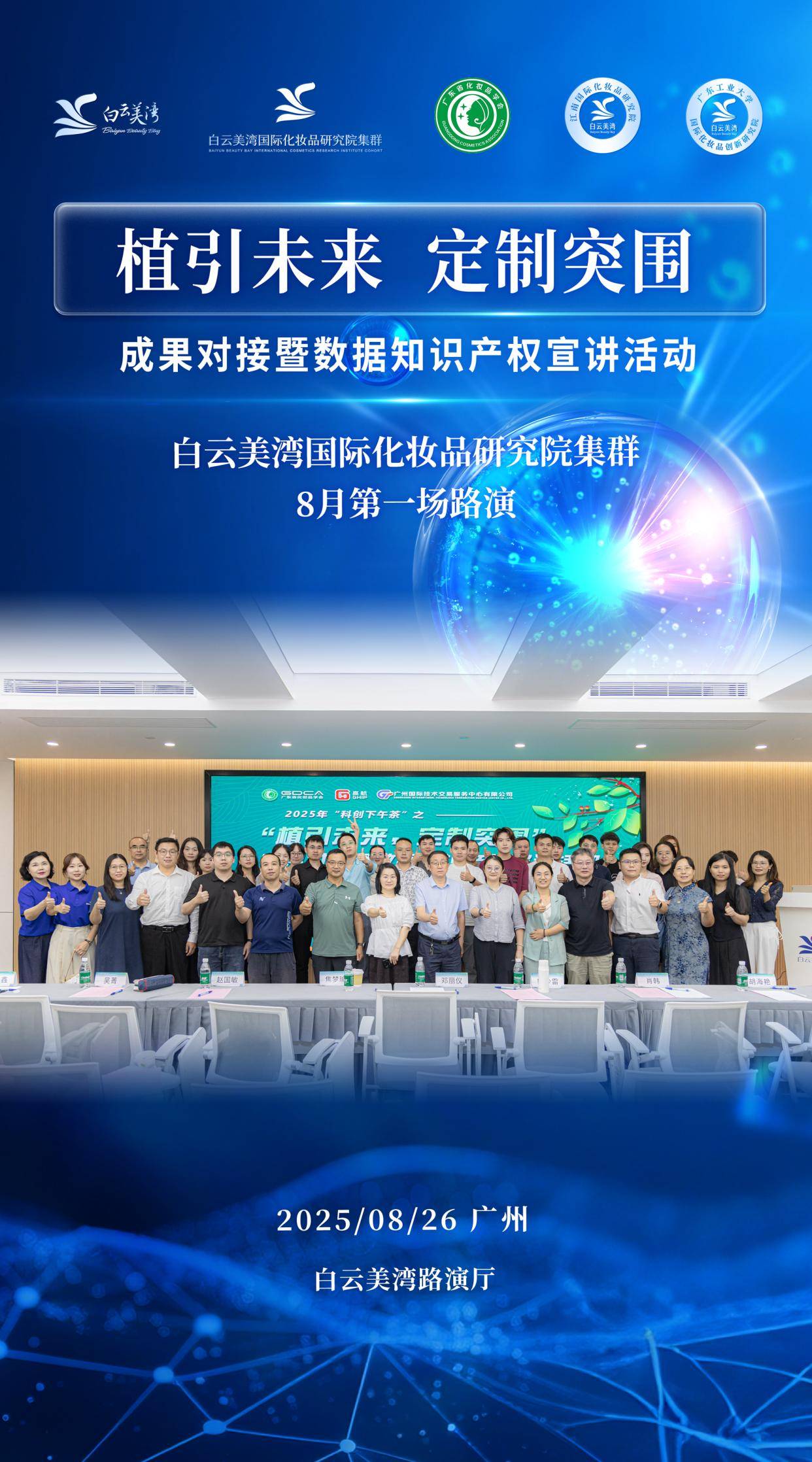 8月26日,白云美湾国际化妆品研究院集群于白云美湾路演厅举办8月首场路演。本场活动为「植引未来,定制突围」成果对接暨数据知识产权宣讲专场分享,本次活动聚焦前沿——深入探讨植物原料的创新提取、活性研究、功效评价及可持续应用,引领国妆研发新方向;破解瓶颈——剖析个性化定制(从配方研发、柔性生产到精准服务)的技术壁垒、数据保护与运用、法规挑战与商业模式,寻找破局之道;精准对接——搭建高效务实的产学研用金对接平台,加速植物科技成果转化与定制化解决方案落地,赋能“国妆“品牌提升核心竞争力与国际影响力。