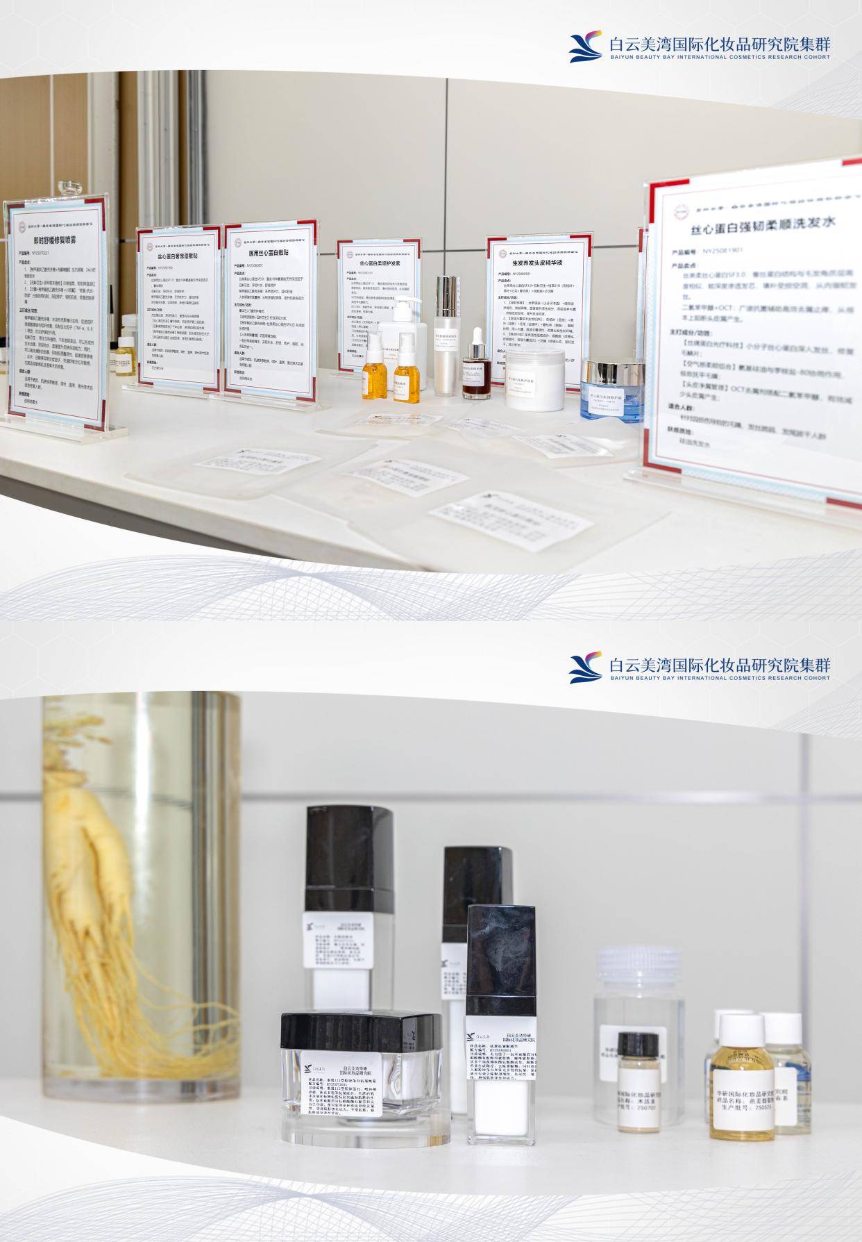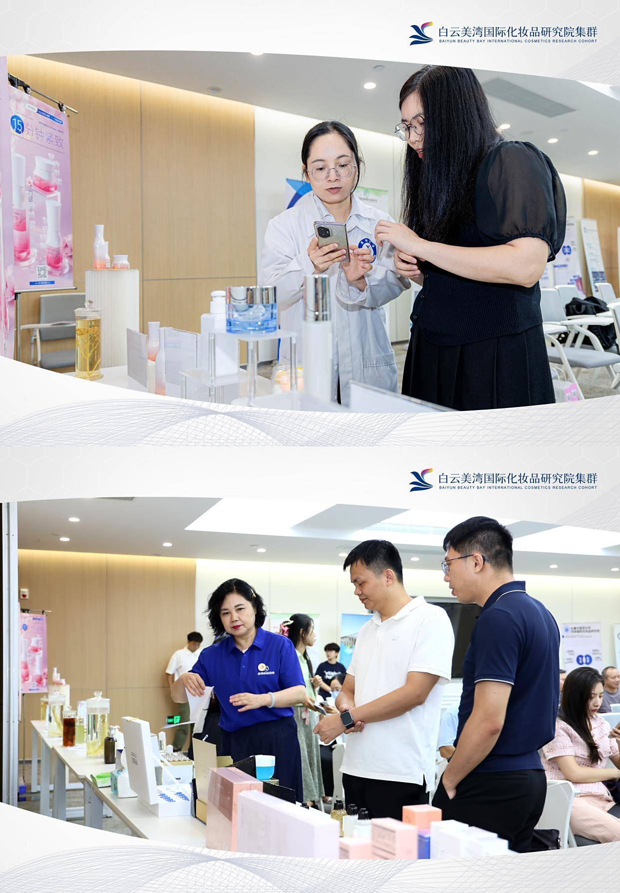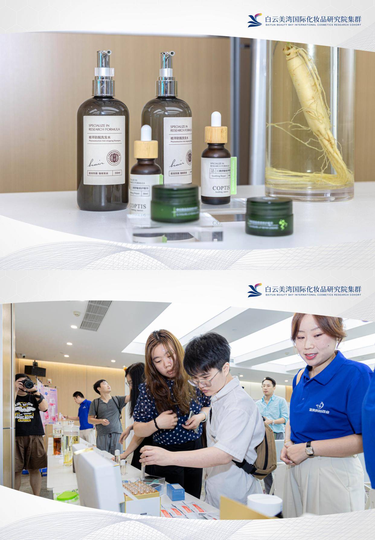 在创新成果展示区,白云美湾广工大院、江南院、中研院、医颜院、药妍院、纳妍院、上研院、清研院、华研院共九家研究院集中亮相,展出多种创新植物原料及基于市场需求的定制化产品。现场嘉宾踊跃体验、交流热烈。广工大与江南院更携手丸美、暨悦倾风、萃雅、hfp、溪木源、HBN等国货品牌,展出多款合作上市产品,全面展现“研发-检测-生产-品牌”一体化创新能力,真正实现“从实验室到梳妆台”的产业闭环。