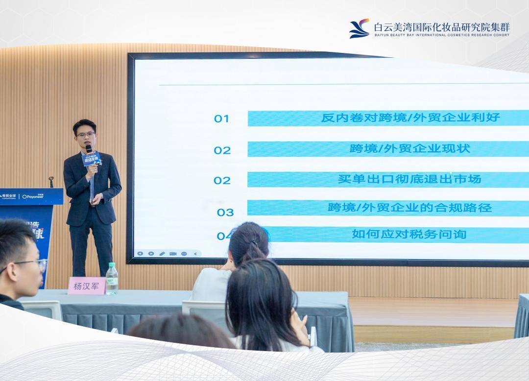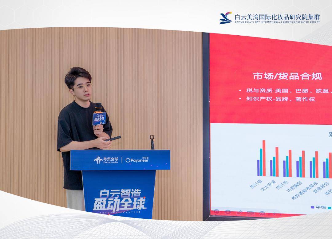 本次活动聚焦白云区化妆品、皮具箱包两大优势产业,构建全方位出海赋能体系。由于国内化妆品、皮具箱包行业正遭遇同质化竞争加剧、利润空间压缩、订单增长放缓的发展瓶颈,海外万亿级蓝海市场成为企业寻求新增长的关键方向。本次活动精准破解企业出海 “渠道难寻、合规难办、订单难接” 的核心痛点,依托白云美湾国际化妆品研究院集群在技术研发、标准制定、合规认证等领域的优势,以及深耕跨境电商领域多年,拥有 “粤贸选品中心” 线下载体与 “粤贸甄选平台” 线上渠道的粤贸全球平台,为白云区两大优势产业搭建起链接全球市场的高效桥梁。
